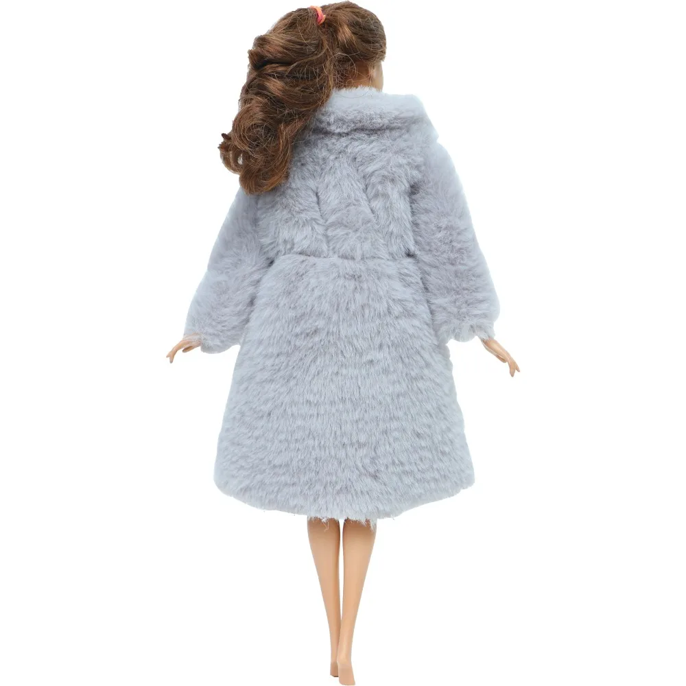 1 комплект, серая теплая зимняя шуба ручной работы, свободная Толстая Шуба, плюшевые топы, Одежда для куклы Барби, аксессуары, игрушка для девочек