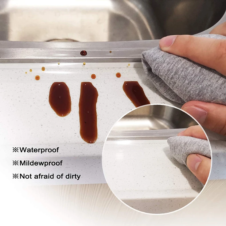 Самоклеящаяся лента для кухонной раковины проста в использовании, оторвав наклейку от клея и приклеив ее к слоту на раковине.