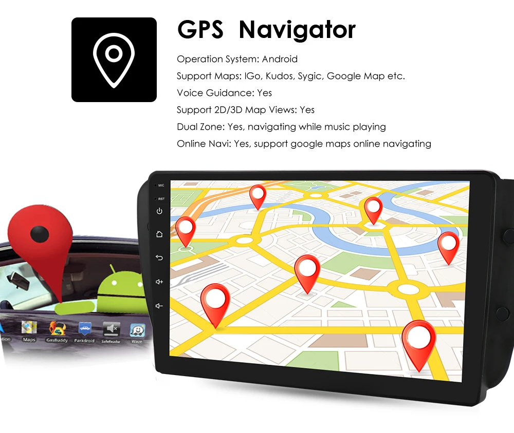 Автомобильный GPS-навигатор RDS с экраном 9 дюймов на Android 10,0 ...