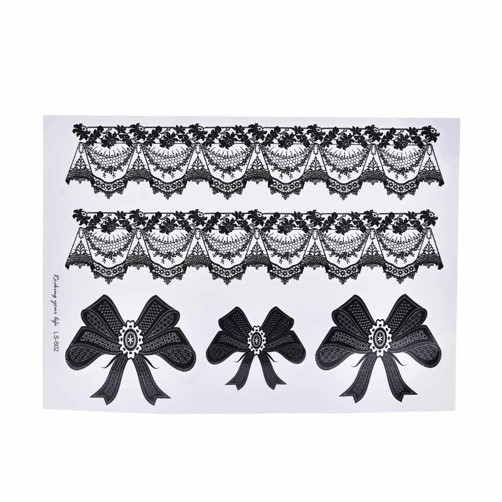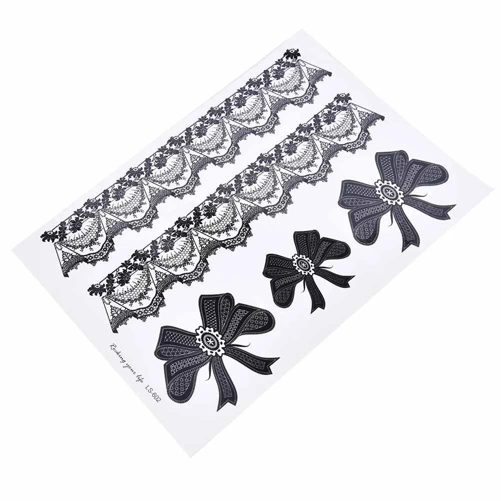 Временные татуировки ноги часть сексуальные чулки тату-наклейки в виде кружева черный