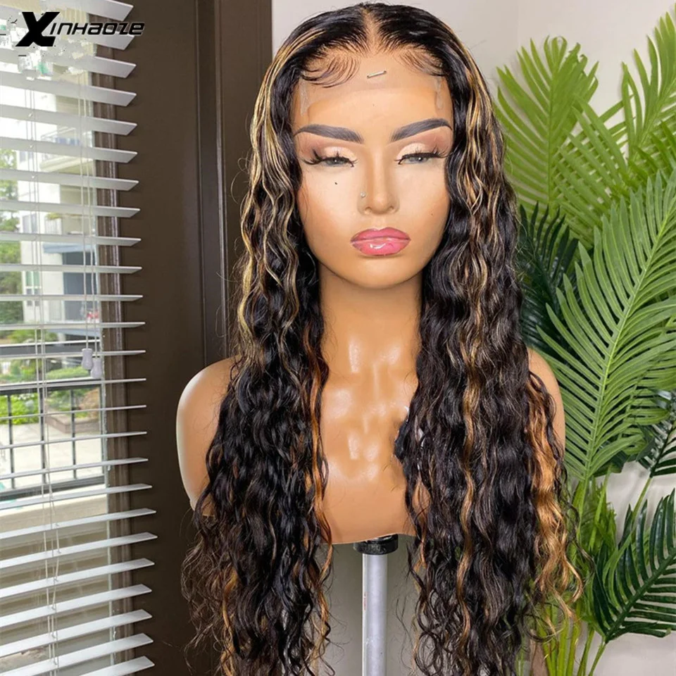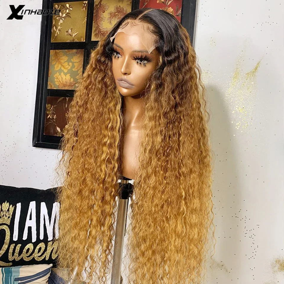 Медовая Блондинка 13x4 кружевные передние парики вьющиеся человечес...