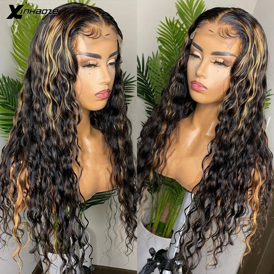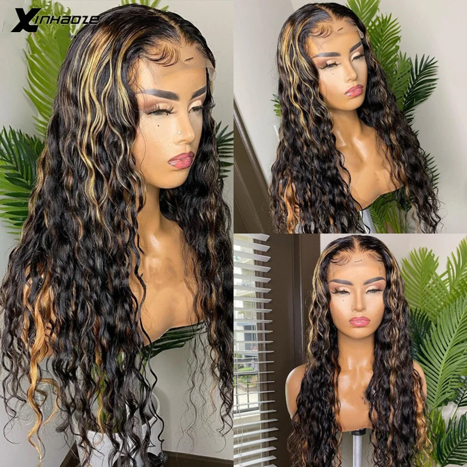 13x 4 парики из человеческих волос на сетке спереди, хайлайтер, Омбре, блонд, предварительно выщипанные волнистые бразильские волосы Remy 13x 4, парик на сетке спереди для женщин