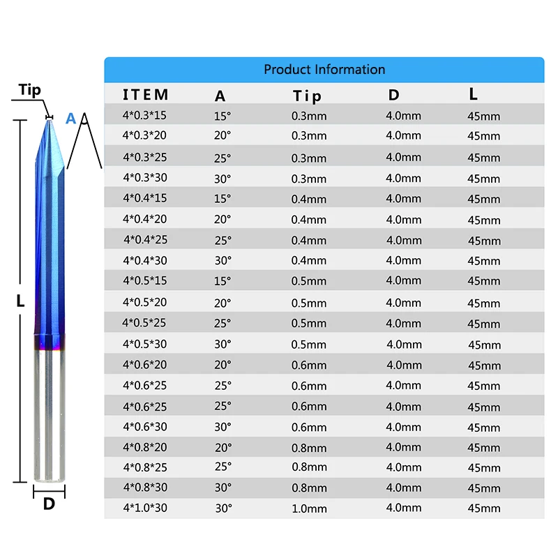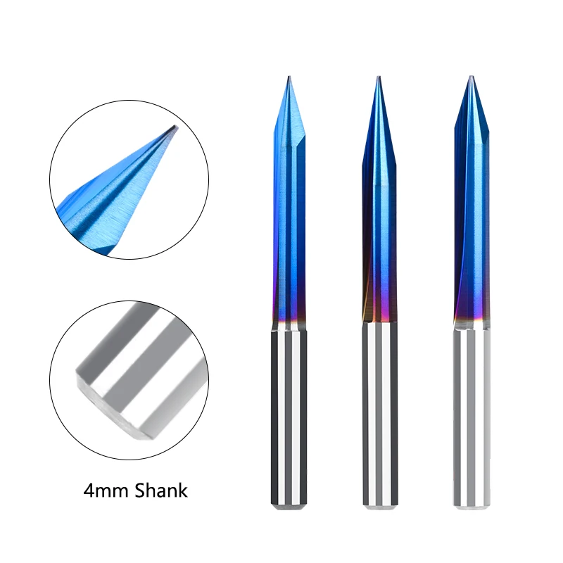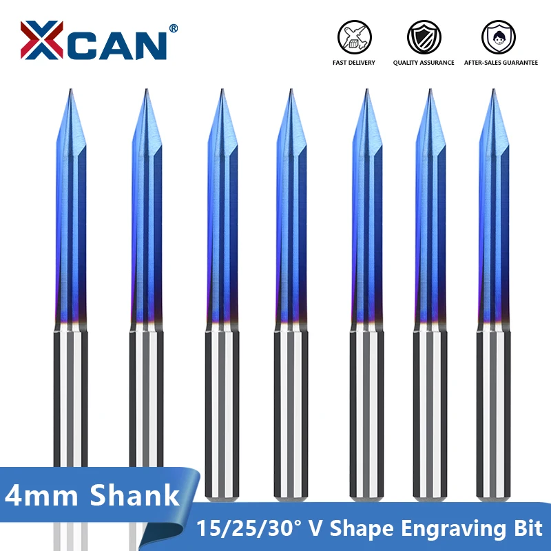 XCAN гравировальное лезвие 4 мм Концевая фреза ЧПУ резьба бит 15 -30 градусов V Форма инструмент для обрезки синий покрытием с покрытием Алюминий нитрид Титан фреза
