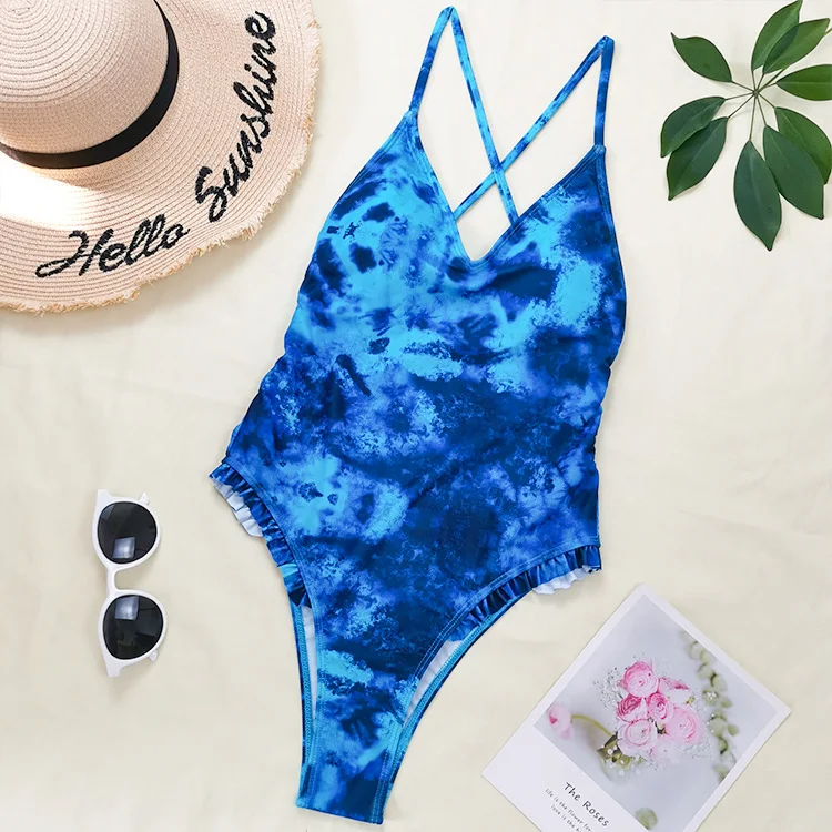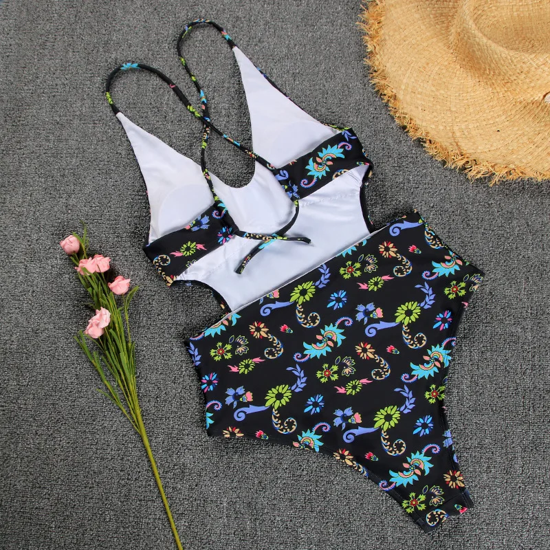 Пикантный комбинезон Miyouj с перекрестной спинкой, женский купальник с цветочным принтом в стиле пэчворк, цельные костюмы 2021 с V-образным вырезом, купальник с высокой талией, купальный костюм