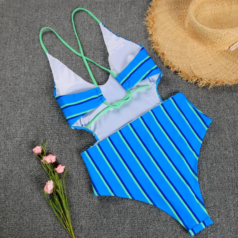 Купальник с высоким вырезом, бандажный купальник, женские купальник...