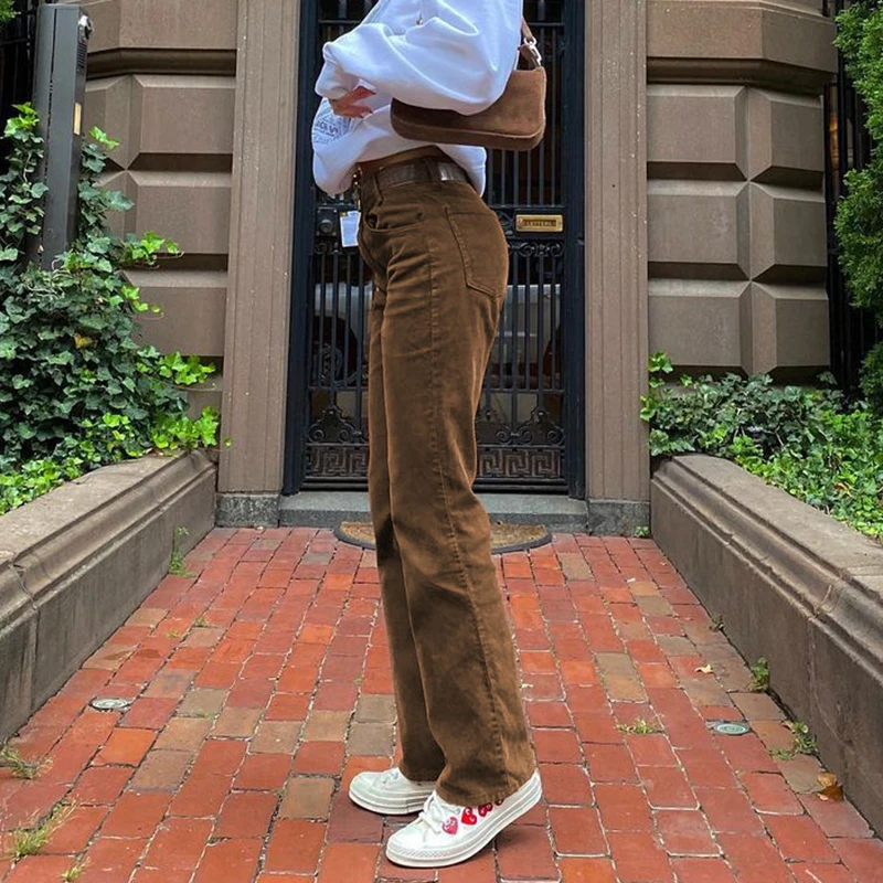 ZOVSV Осенние повседневные вельветовые коричневые длинные брюки жен...
