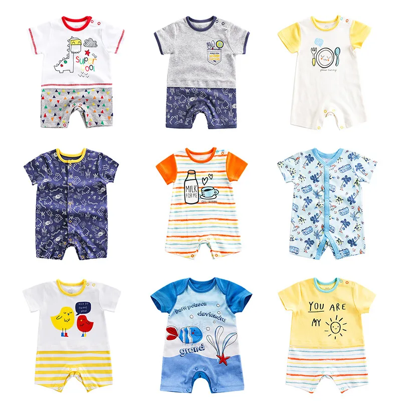 2021 дешевый хлопковый Детский комбинезон с короткими рукавами; Одежда для малышей