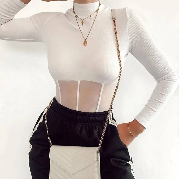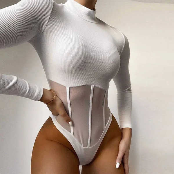 Женское сексуальное боди с длинным рукавом, сетчатый комбинезон в стиле пэчворк, мягкий Облегающий комбинезон-корсет, весна-лето, 2021