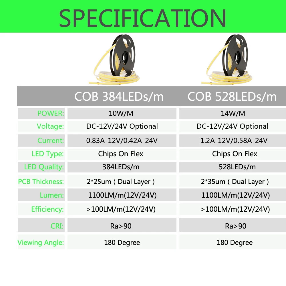 Светодиодная лента COB, 384 светодиодовм, 528 светодиодовм, мягкая ...