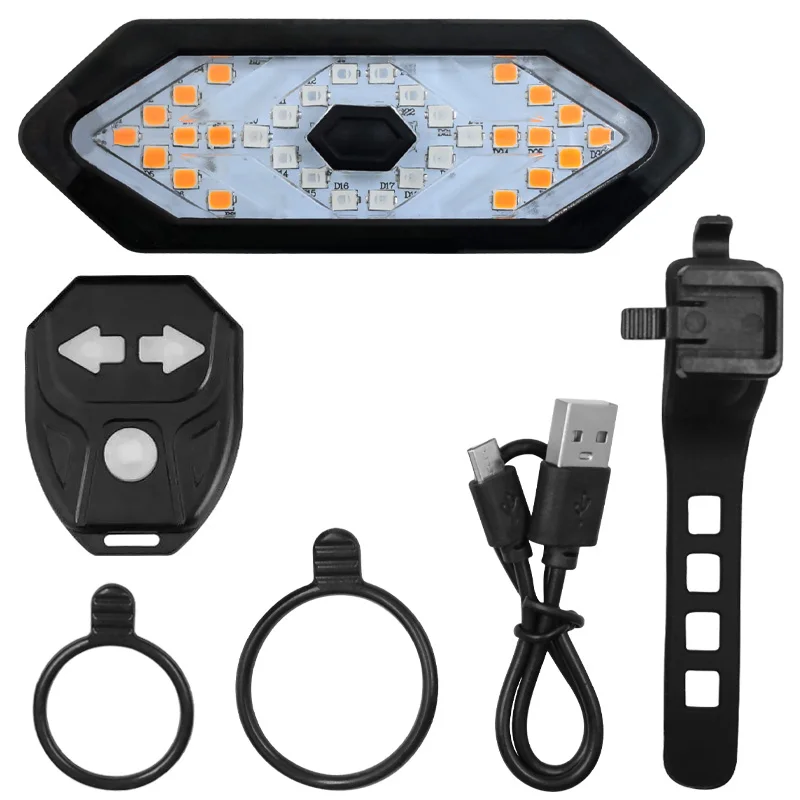 3. Зарядка от USB и CR2032: задний светильник с поворотным сигналом заряжается от USB, он используется для зарядки около 18 часов в течение 3 часов. Беспроводной пульт дистанционного управления может легко заменить батарею CR2032.