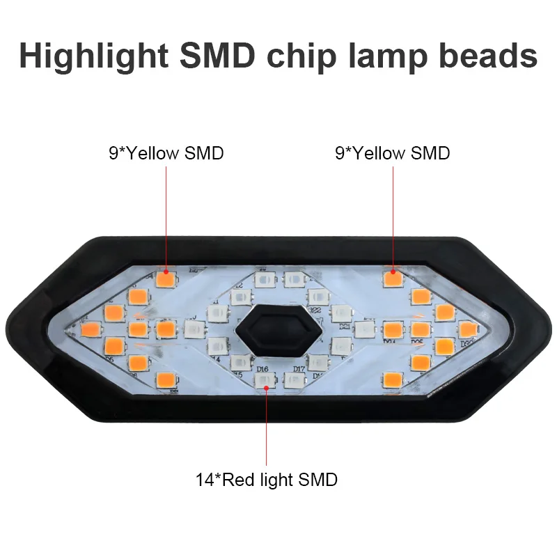 1. Высокая яркость SMD патч лампы: 14 Красный SMD и 18 желтый SMD на левой и правой сторонах, высокая яркость, эффективно повышает безопасность езды в ночное время.