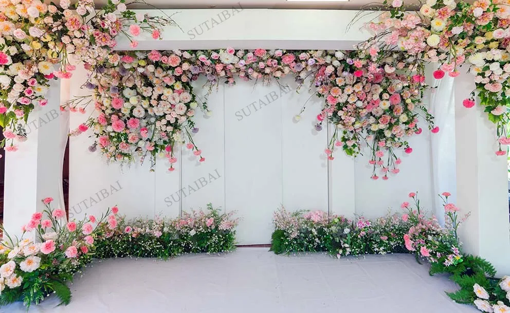 Виниловый 3D фон для свадебной фотосъемки с розовыми цветами
