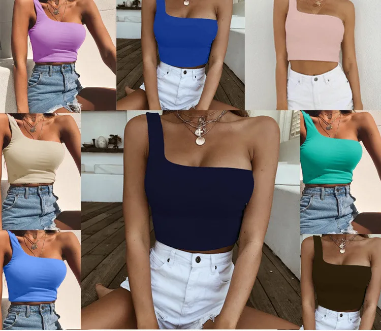 Летние женские повседневные топы на одно плечо без рукавов, укороче...