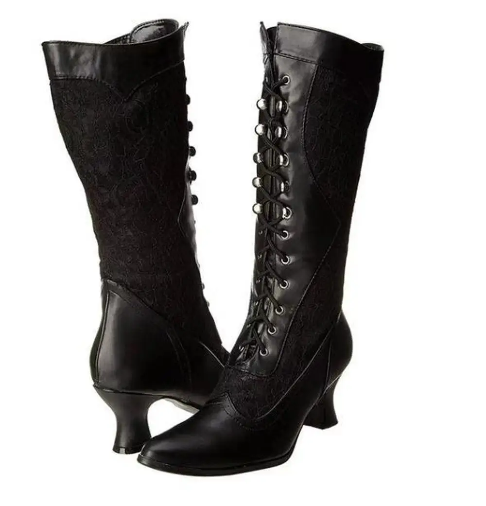 Женские викторианские ботинки до середины икры с острым носком, кружевные ажурные панковские ботинки со шнуровкой на необычном высоком каблуке, новинка 2022