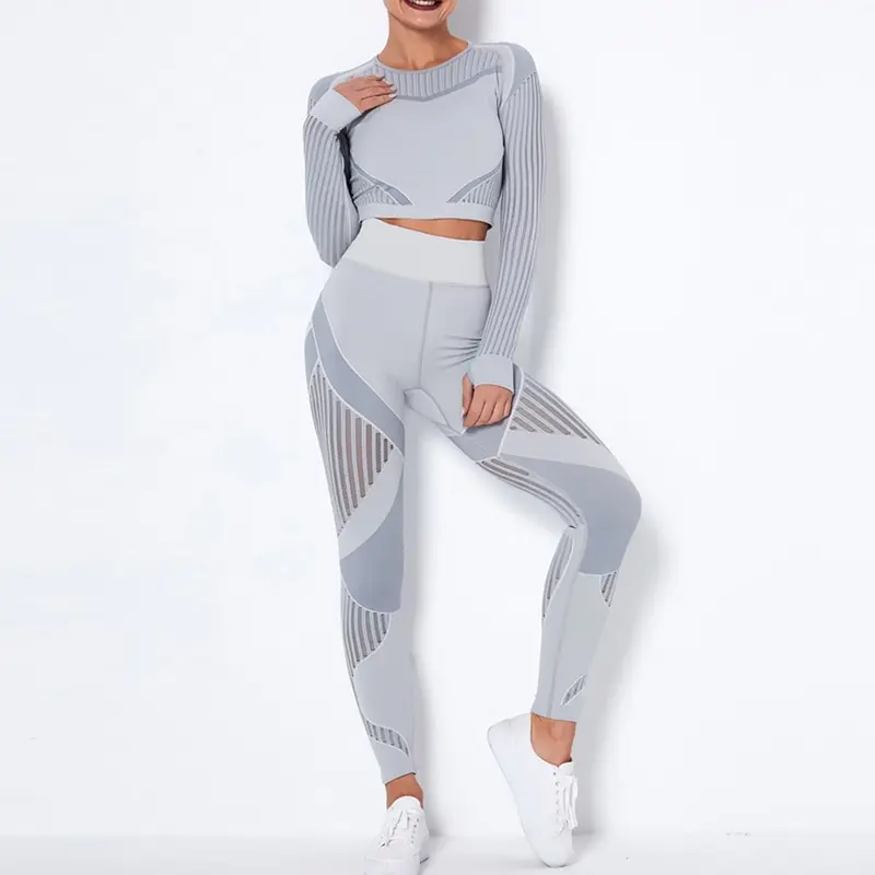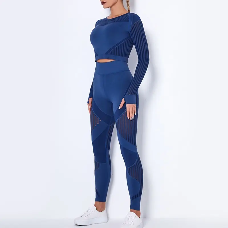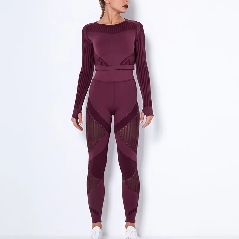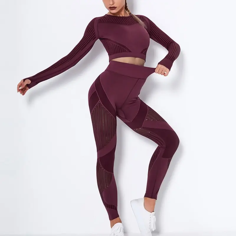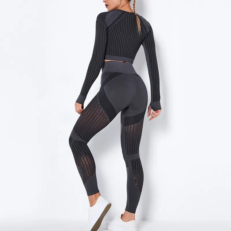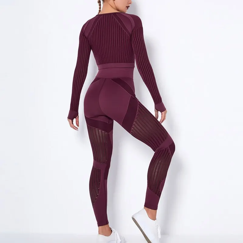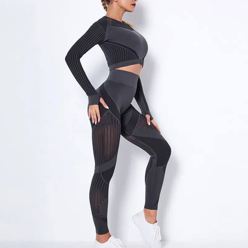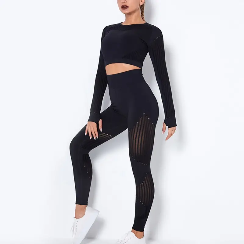 Ажурный бесшовный комплект для йоги, спортивные наряды, женская руб...
