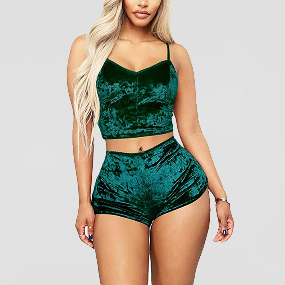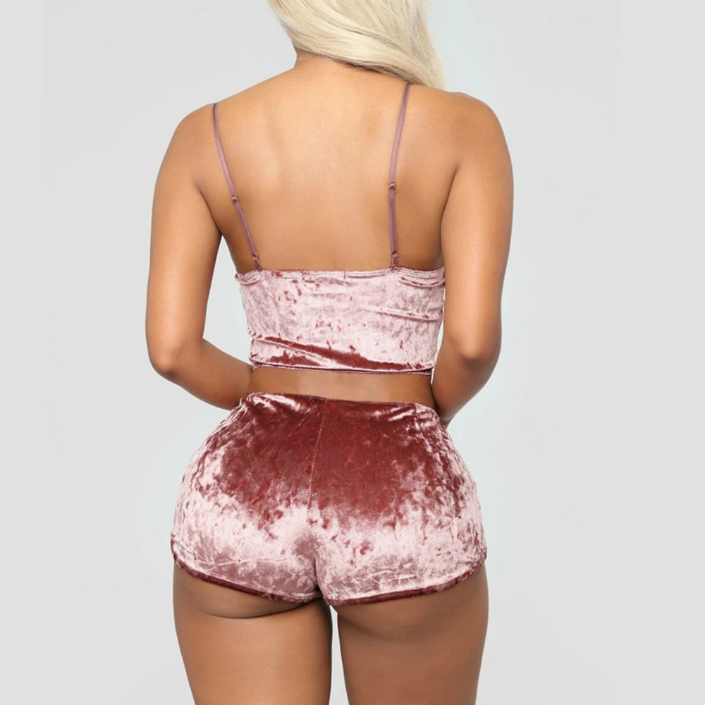 Женская Вельветовая Пижама, сексуальная пижама на бретелях-спагетти, бархатные шорты, пижамный комплект, женская одежда для сна, Женский пижамный комплект для вечеринки, новинка, 2020