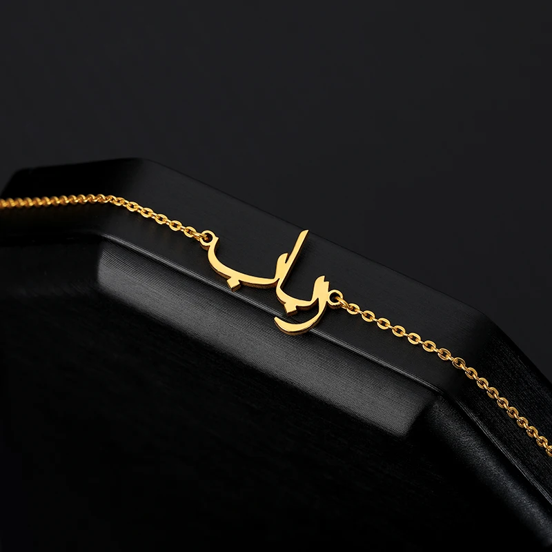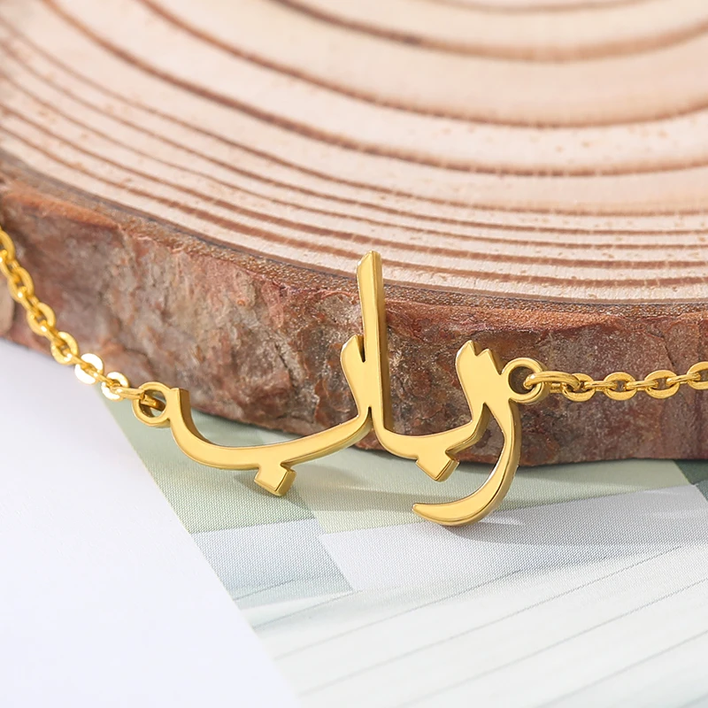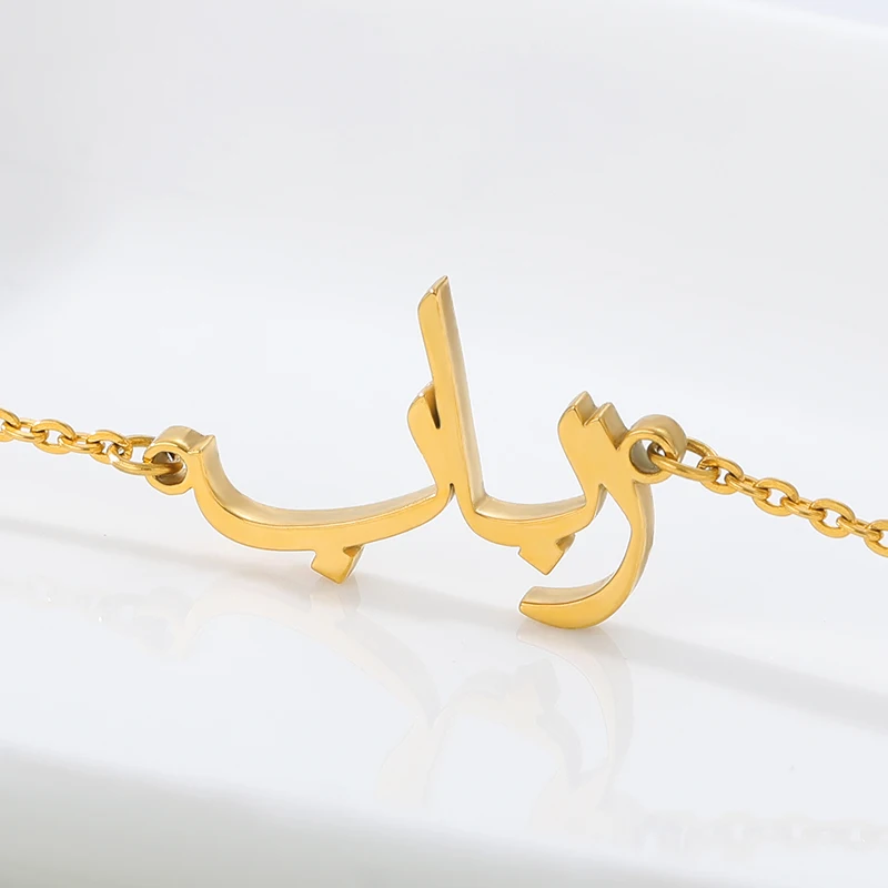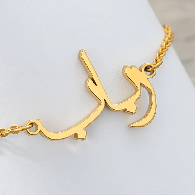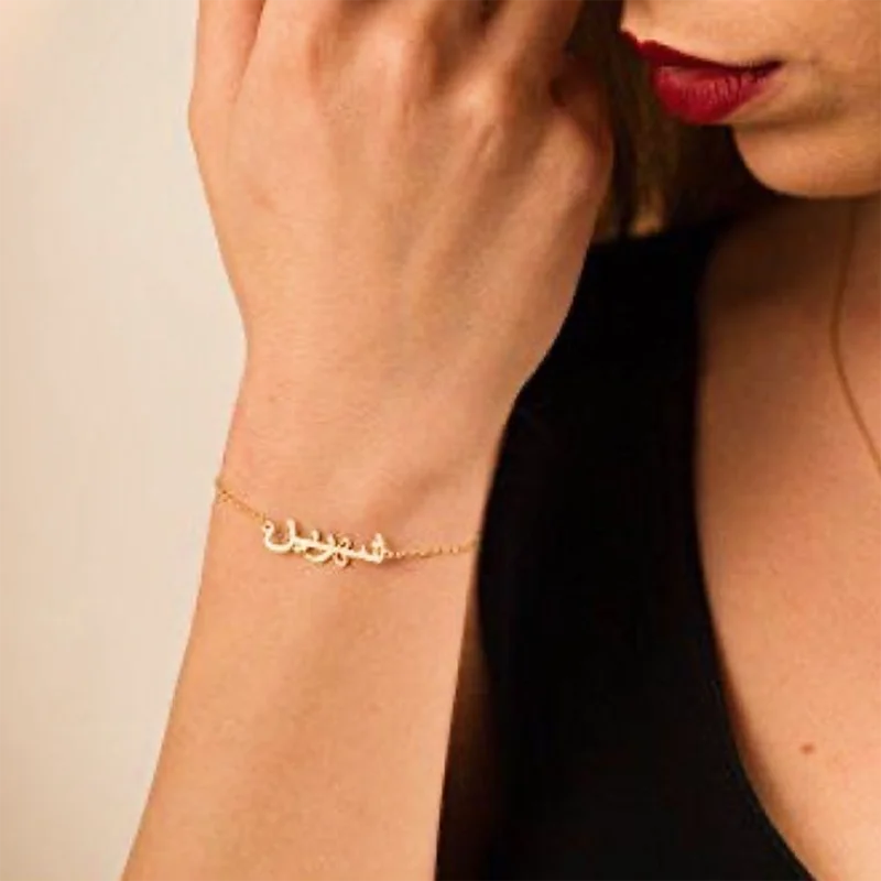 Арабский Браслет на заказ для женщин, нержавеющая сталь, персонализированная табличка, золотой браслет, арабское имя, браслет, подарок на день Святого Валентина