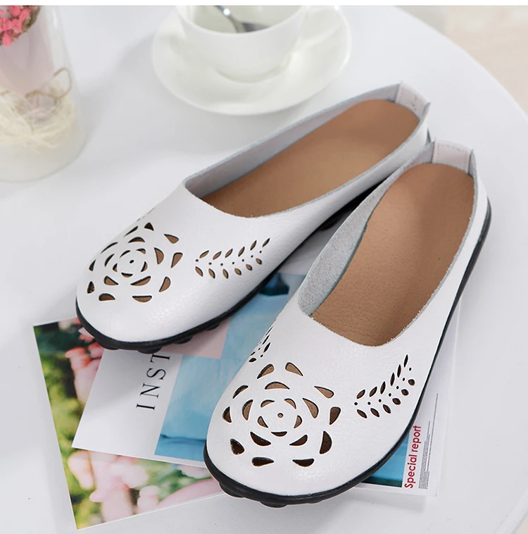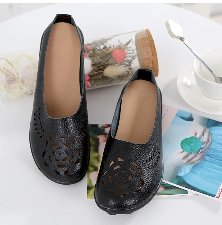Туфли женские легкие без шнуровки, повседневная обувь на плоской платформе, лоферы, с вырезами, размера плюс женская обувь