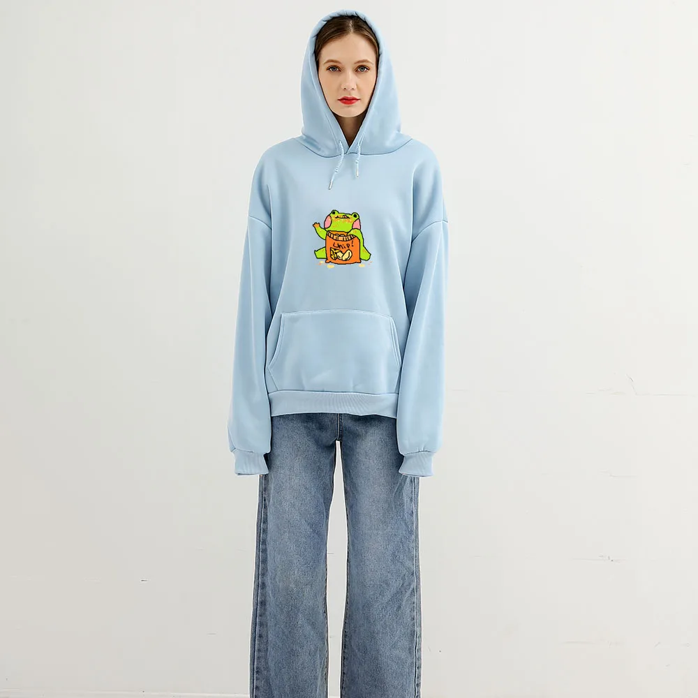 Милые забавные толстовки с рисунком лягушки, Женская Толстовка Оверсайз Kawaii с длинным рукавом, женские пуловеры Harajuku Sudadera Mujer Стиль: Повседневный,Вес: 450 г