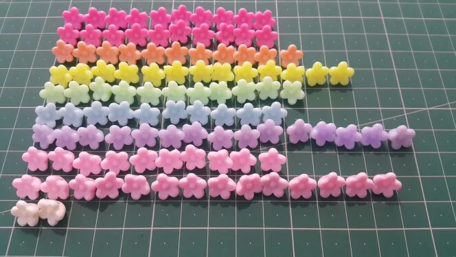 Было несколько бусин, которые были скошены или сломаны. Также большинство полученных бусин были одного цвета.