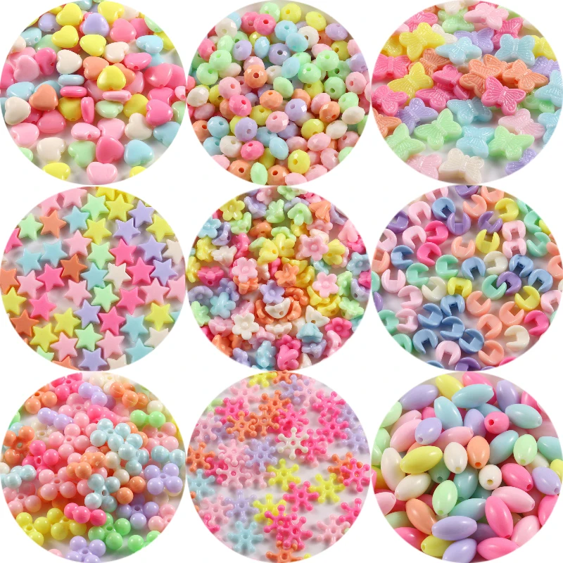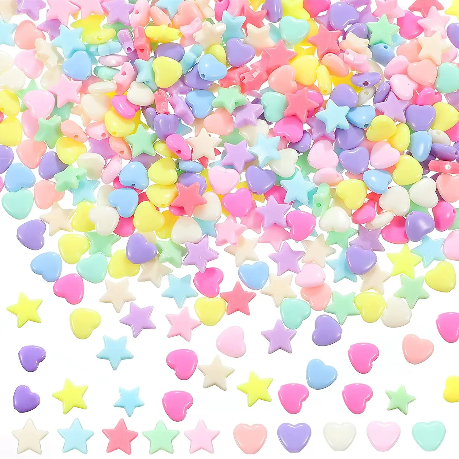 Бусины Детские, разноцветные, акриловые, 100, 200 шт., для изготовления ювелирных изделий, браслетов ручной работы, звезды сердце цветыбусины для детей шт.