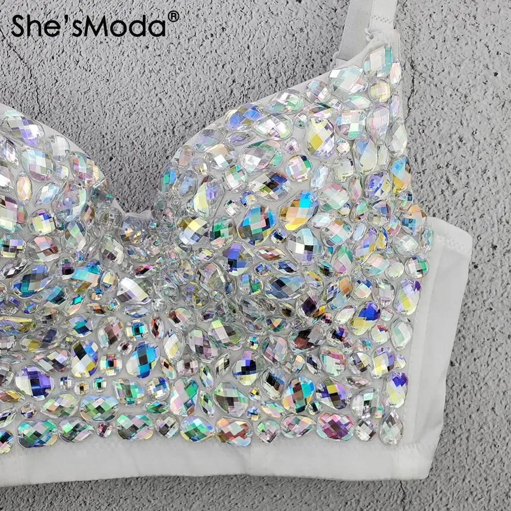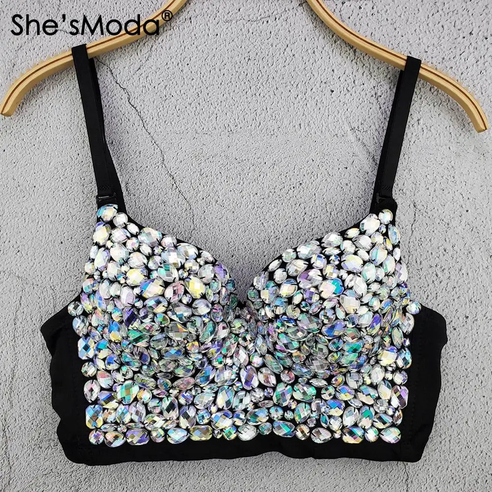 She'sModa Новый Стразы бюстье жемчуг алмаз Push Up ночной клуб Bralette Для женщин бюстгальтер укороченный Топ короткий жилет размера плюс