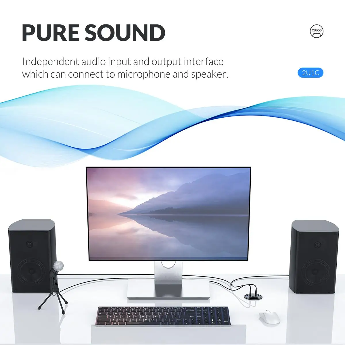 Настольный Концентратор ORICO USB 3,0, высокоскоростной разветвитель, кардридер, наушники, микрофон, адаптер для компьютерных аксессуаров