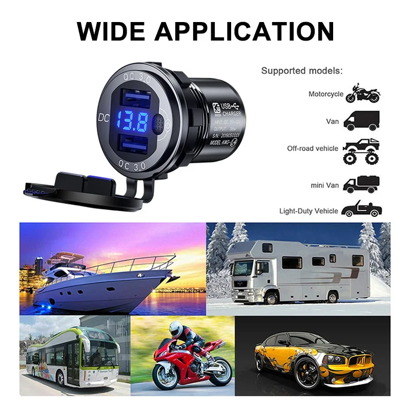 12 В 24 В Двойное быстрое зарядное USB-устройство QC3.0 розетка электрическая со светодиодным вольтметром вкл. ВЫКЛ. Выключатель для автомобиля лодки морского мотоцикла фургона