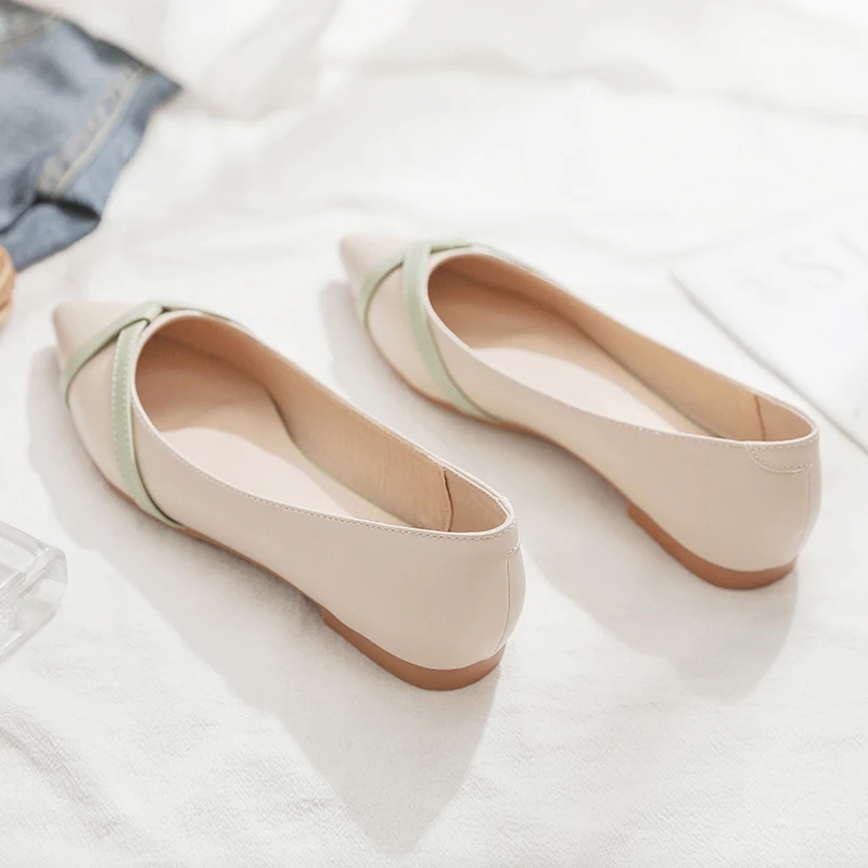Женские балетки на плоской подошве размера плюс 41, 42; Сезон весна-лето-осень; Мягкие Повседневные Удобные женские лоферы с острым носком и зеленым ремешком; AC455