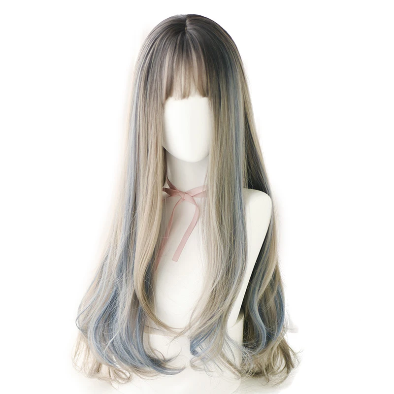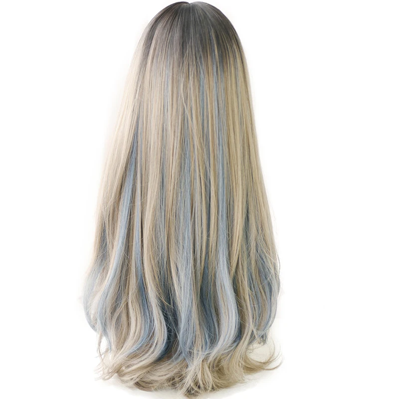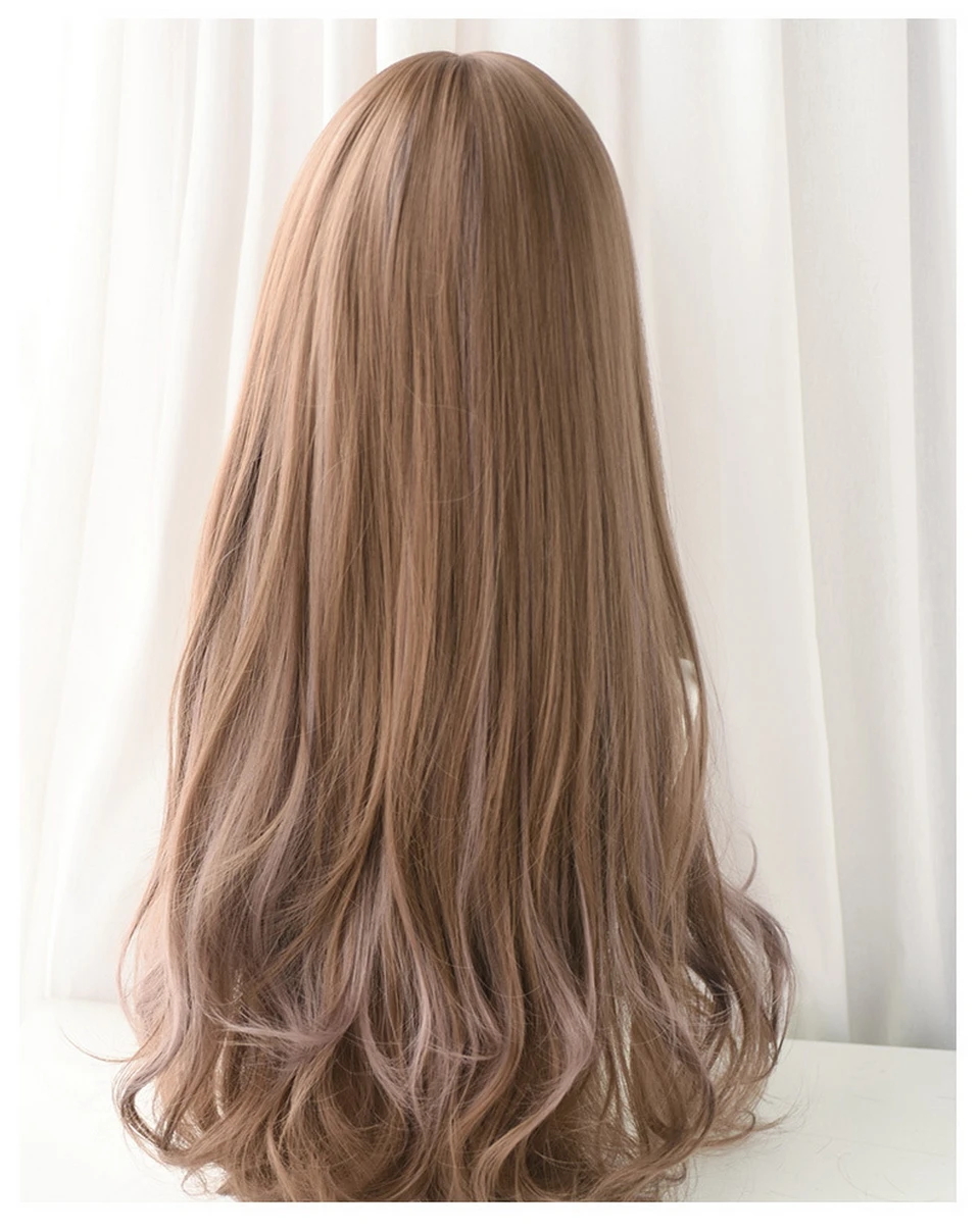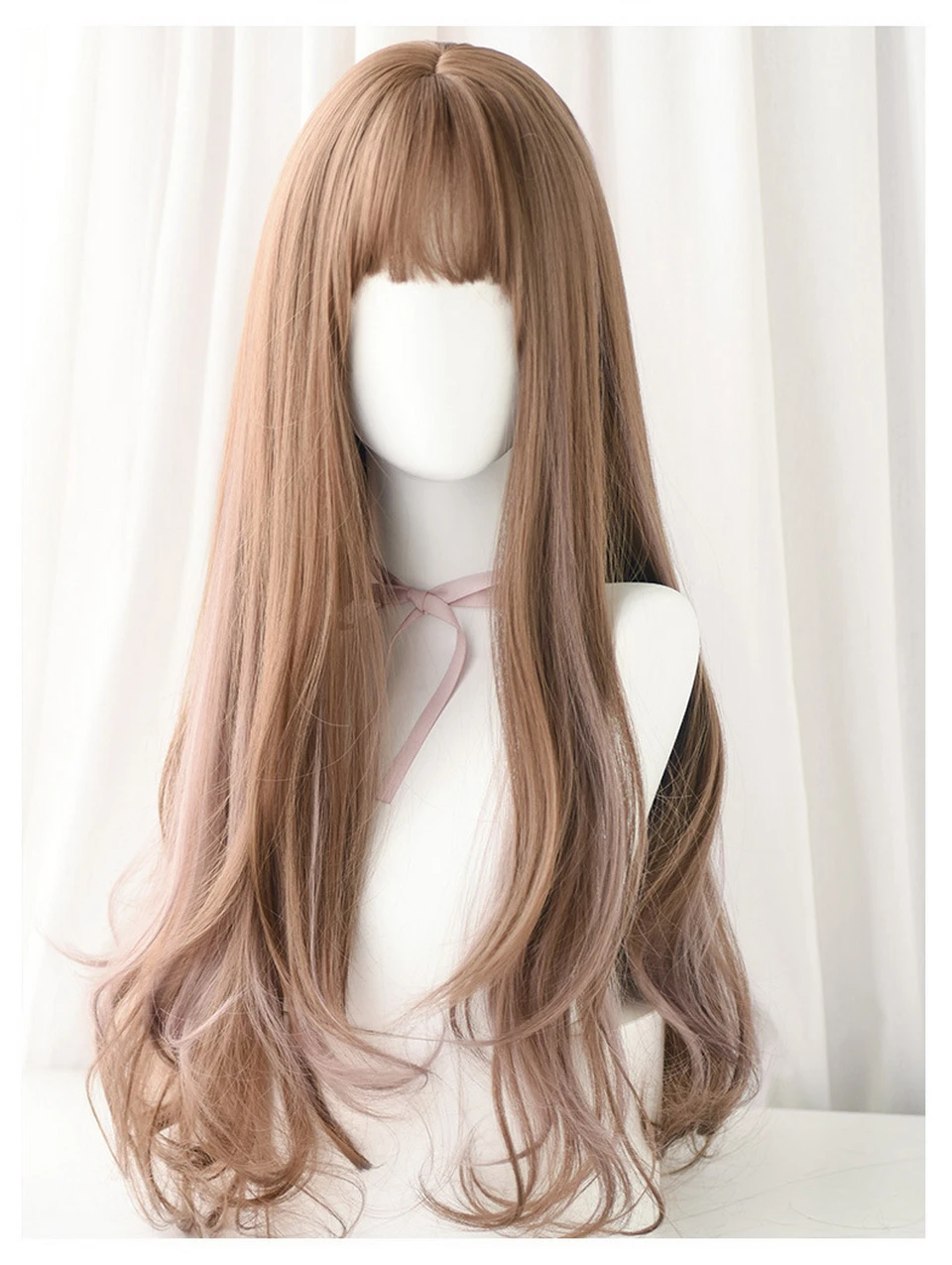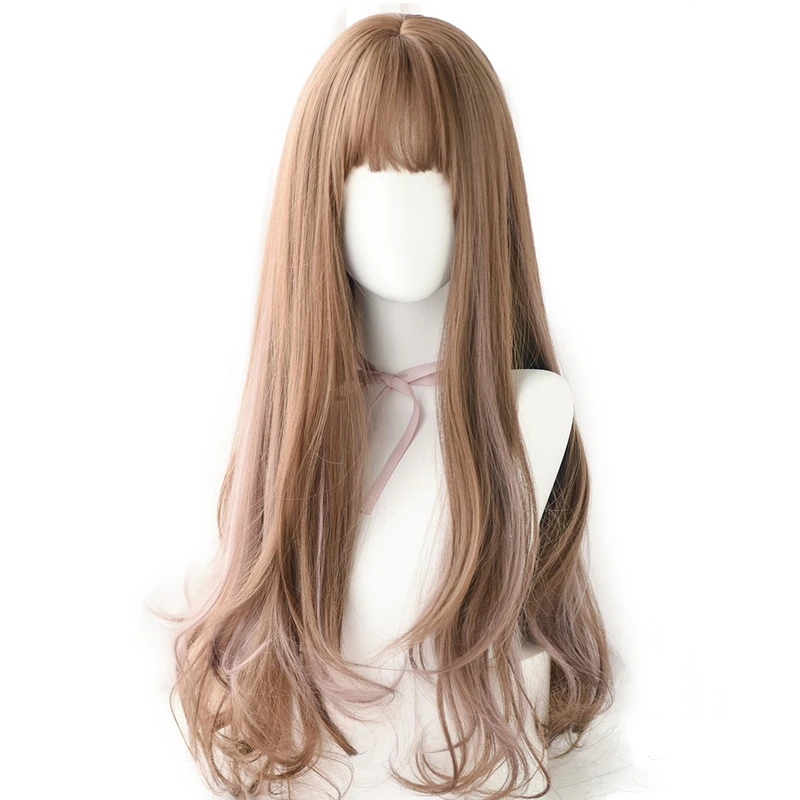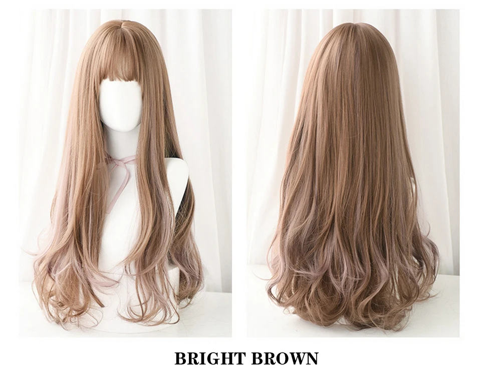 Термостойкий синтетический парик Yiyaobess, длинные волнистые волосы, смешанные, розовые, коричневые, льняные, серые, афроамериканские женские парики с челкой, 65 см