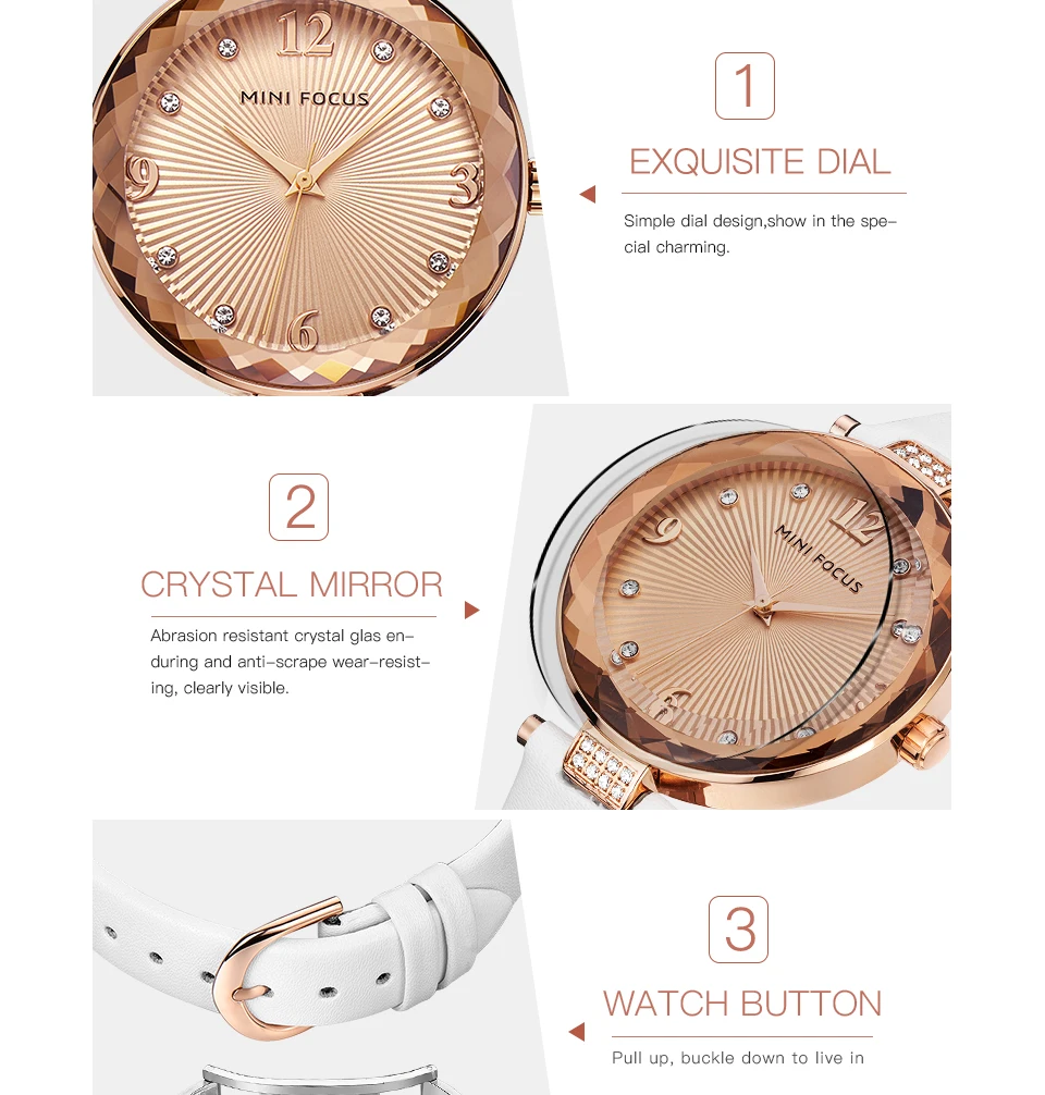 Женские часы MINI FOCUS, розовое золото, кварцевые, с бриллиантами,...