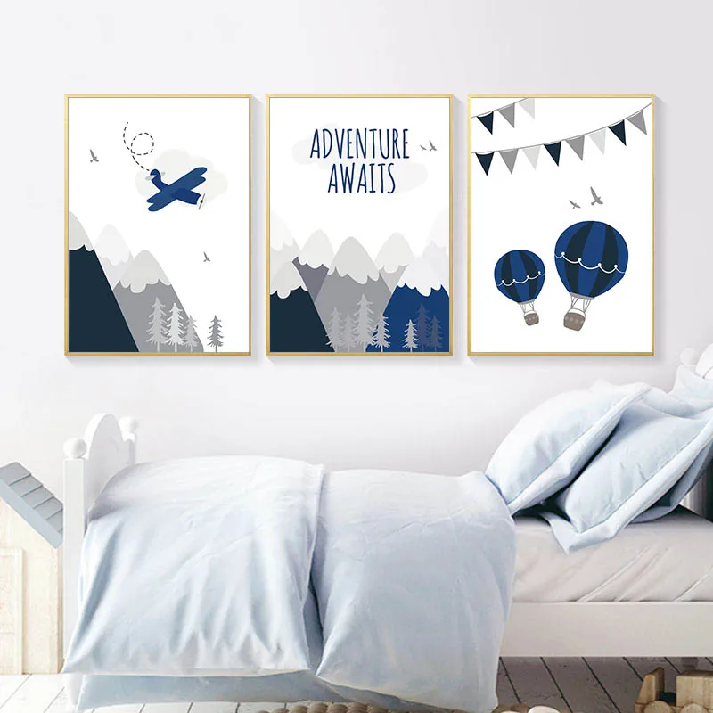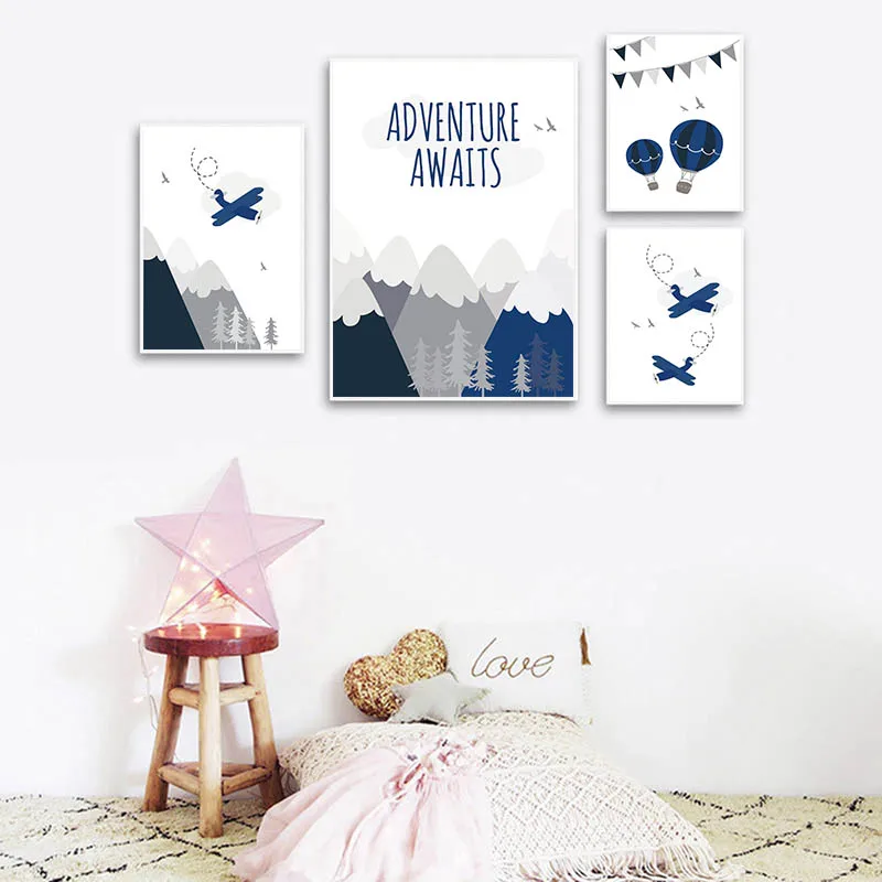 Приключение самолет горный питомник Холст Картина ребенка голубого цвета с мультипликационным принтом плакат художественный принт Nordic Детские украшения комнаты картина