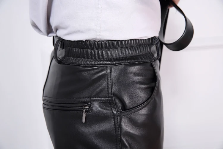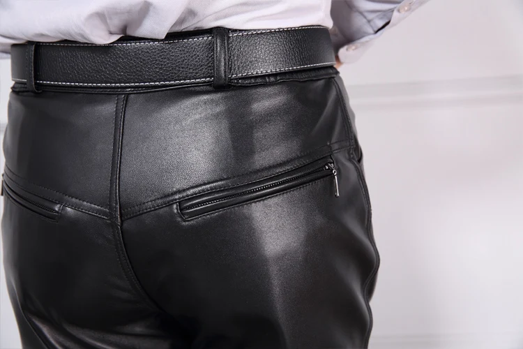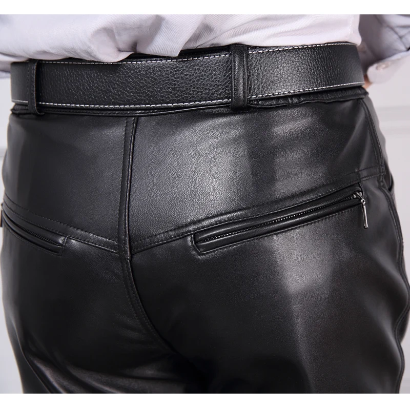 Брюки из натуральной кожи мужские черные винтажные 100% Натуральная овечья кожа высокого качества Модные мужские прямые брюки большого размера