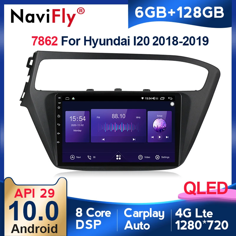 NaviFly 8-ядерный Android 10 6 + 128G QLED carplay DSP BT5.0 Автомобильная Мультимедийная система Android радио плеер для Hyundai i20 2018 2019
