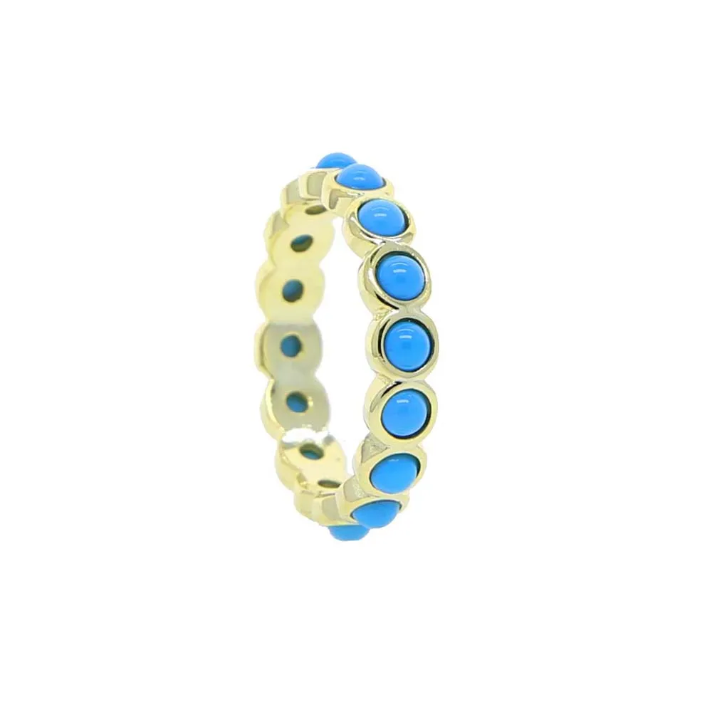 Набор перстней с круглыми геометрическими вставками из камня Голубой Бирюзовый