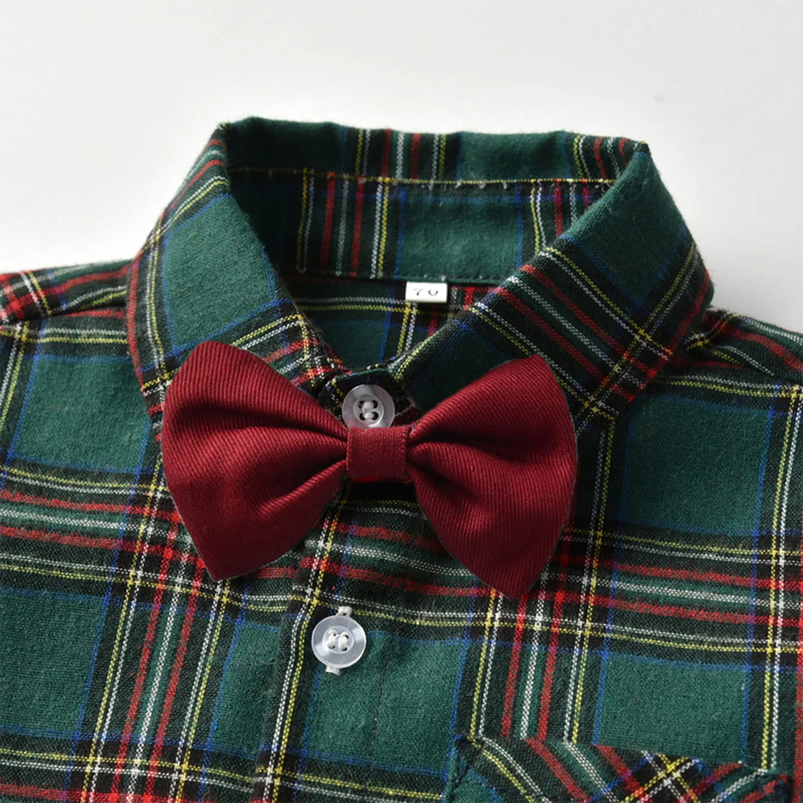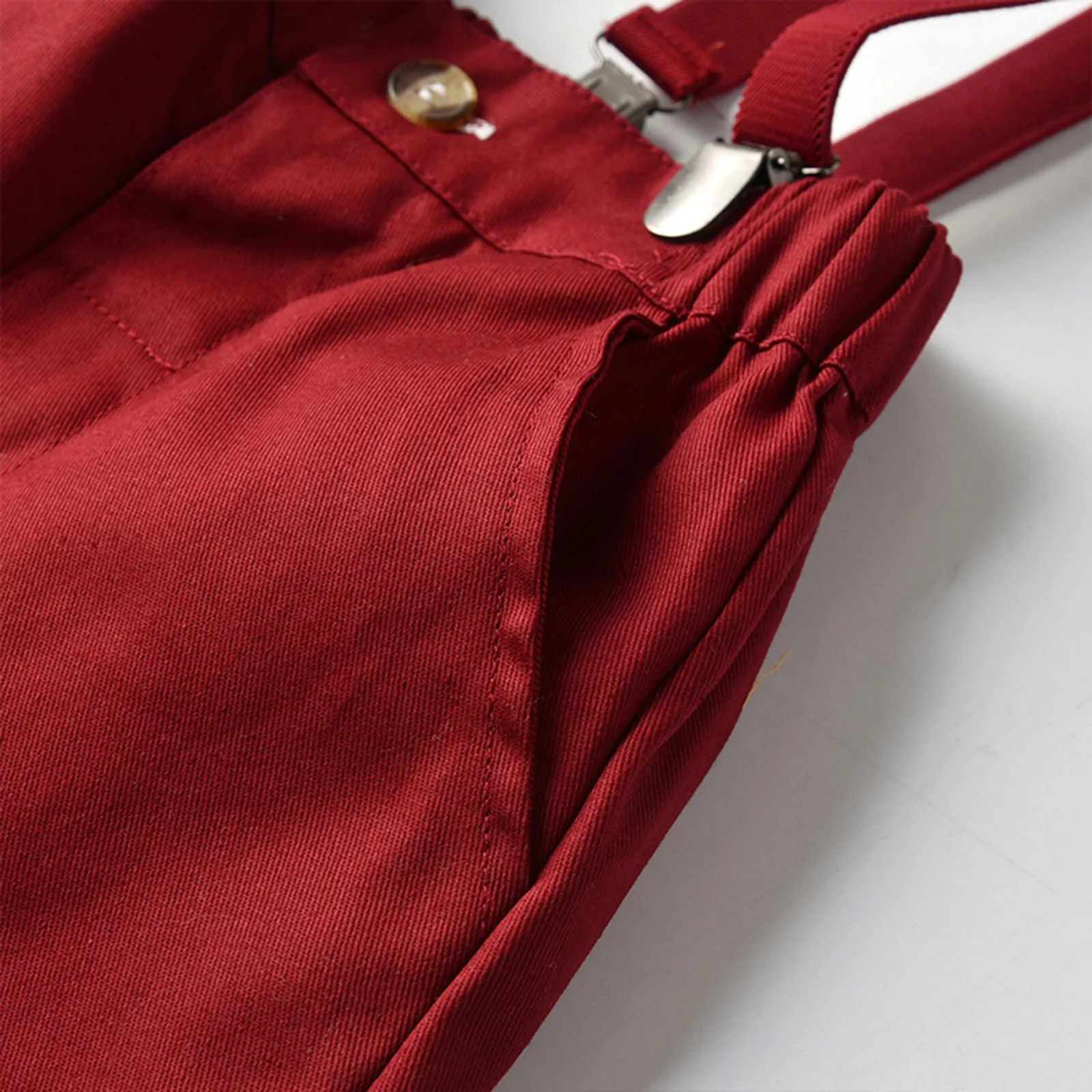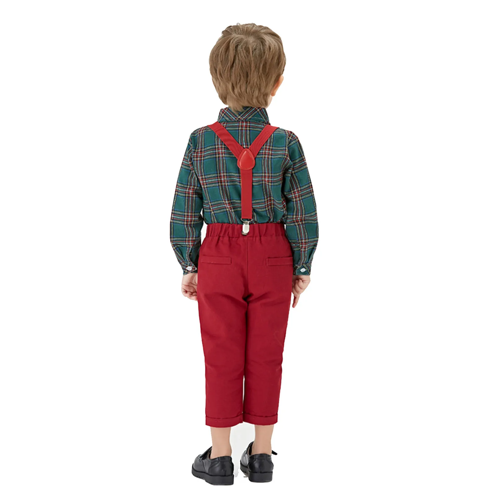 Одежда для маленьких мальчиков, верхняя одежда, осень-зима, детский джентльменский костюм в клетку, формальная рубашка, брюки на подтяжках, детский Рождественский комплект