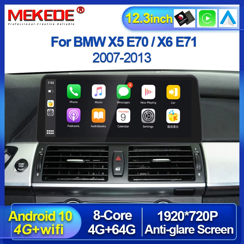 12,3 "8-ядерный Qualcomm Android 10 для BMW X5 E70 X6 E71 с 4 + 64G 4G LTE Автомобильный мультимедийный GPS-навигатор беспроводной Carplay BT WIFI