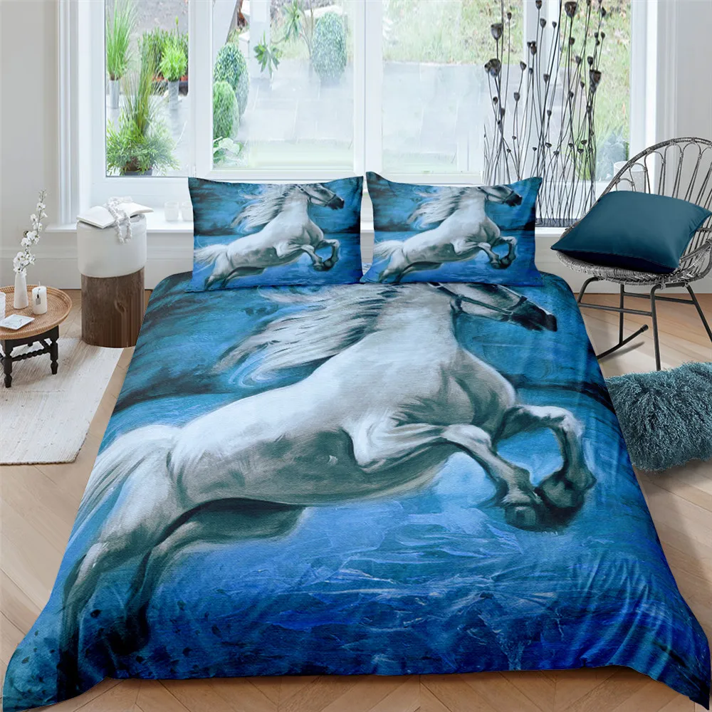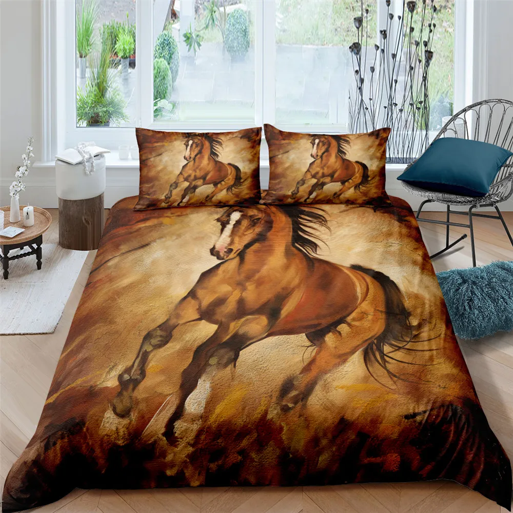 Пододеяльник полный Король Queen один Размеры рисунок лошади Постельное белье 3D Печатных Декор постельный комплект для одеяла