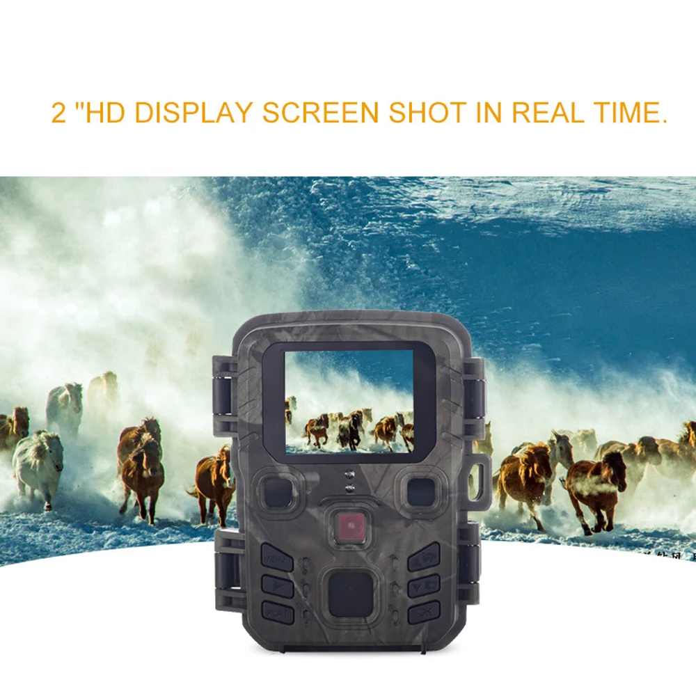 IP65 Водонепроницаемый и мини-дизайн, сверхнизкое энергопотребление операционной системы (в режиме ожидания, до 6 месяцев длительной эксплуатации в поле с 4 батареями АА), легко носить с собой, идеальная охотничья игровая камера для наружного применения.