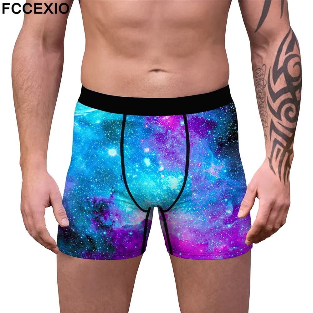 Мужское нижнее белье FCCEXIO, забавные крутые трусы с галактическим принтом, с U-образным вырезом, мягкие боксеры, мужские трусы