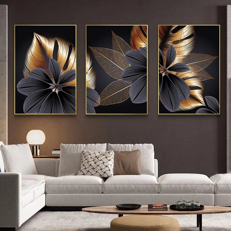 Плакат на холсте с изображением черных и золотых растений, Современный домашний декор, абстрактная настенная живопись, декор в скандинавском стиле для гостиной