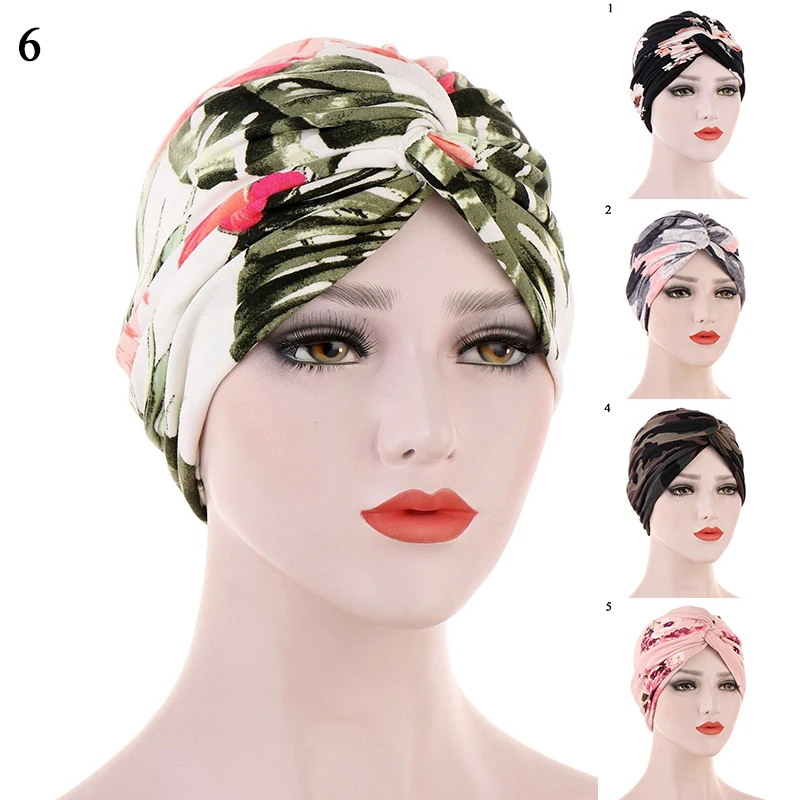 Эластичные складные банданы, шарф для волос, головной убор для мусульманских женщин, тюрбан с цветочным принтом