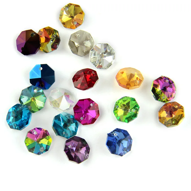 14 мм стеклянные Восьмиугольные бусины разных цветов 50 шт./лот с двумя отверстиями хрустальные подвески для свадебной люстры аксессуары