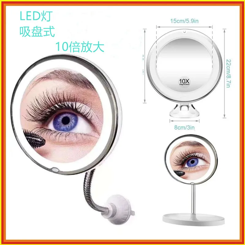 Светодиодная подсветка, зеркало для макияжа в 10 раз, настольное зеркало для макияжа, настольное зеркало для ванной комнаты с присоской, заполняющий светильник, складное зеркало WF