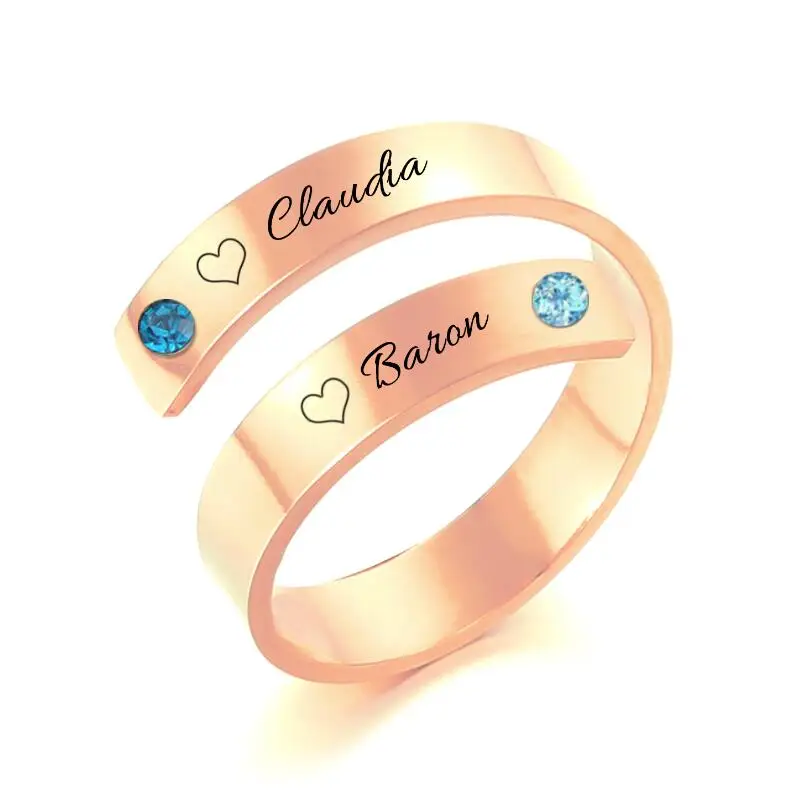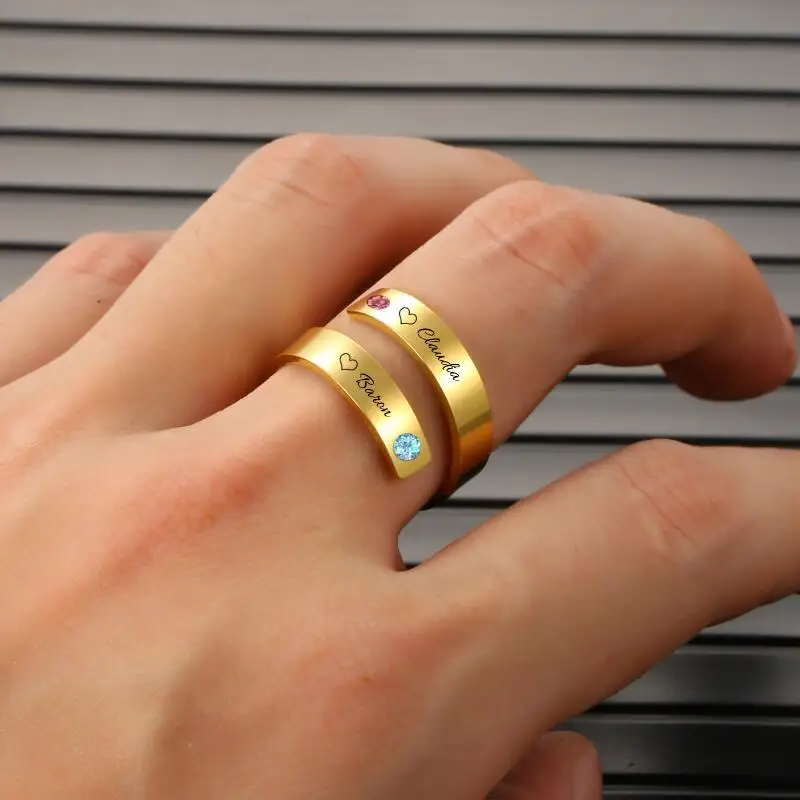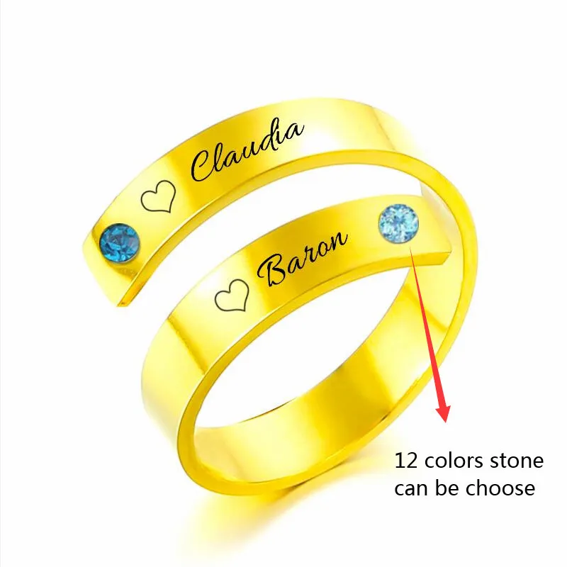 Персонализированные Индивидуальные выгравировано 2 имя камень кольца Нержавеющаясталь Регулируемые кольца пар ЮбилейСвадебные украшения