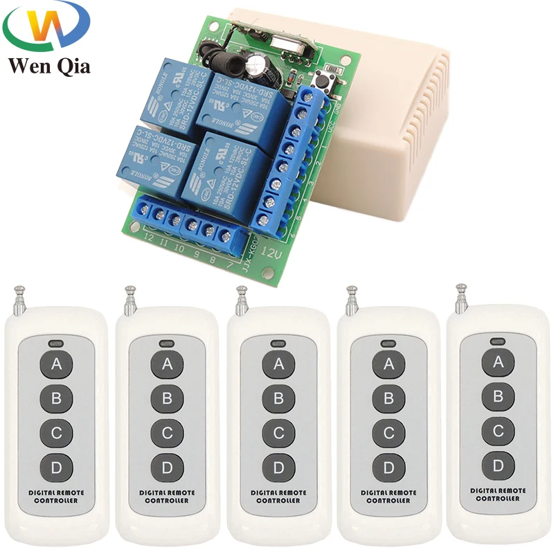 WenQia 433 МГц Беспроводной дистанционного Управление умный переключатель DC12V 10A 4CH релейный модуль приемника RF передатчик для потолочный вентилятор-люстра Светодиодный светильник "сделай сам"