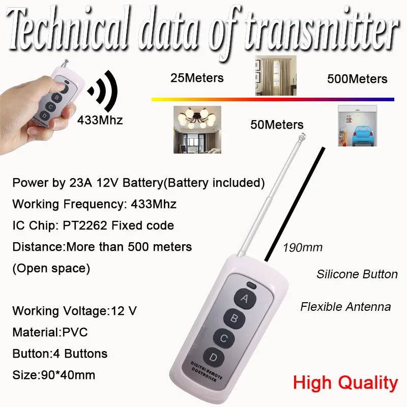 Характеристики433Mhz RF remote control