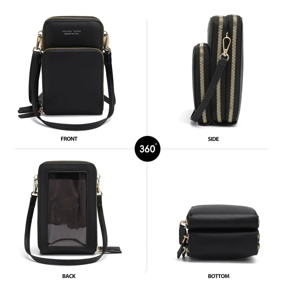 Прямая поставка, брендовый кошелек через плечо для сотового телефона, женская сумка с сенсорным экраном, кошелек с блокировкой RFID, сумка на плечо для телефона, сумочка