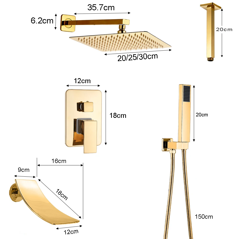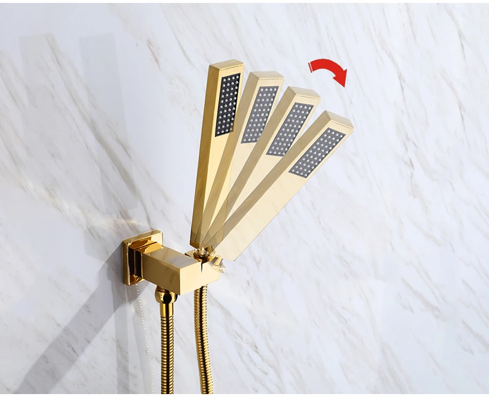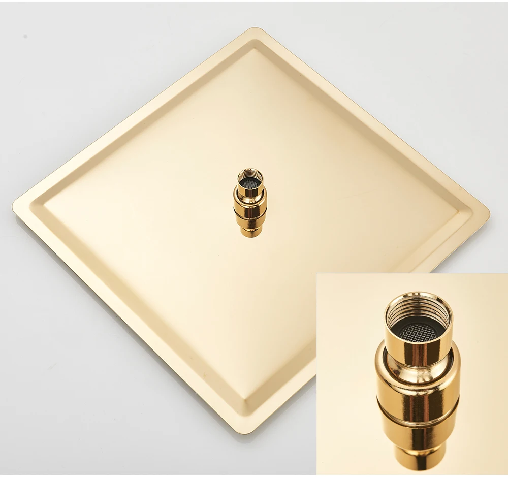 Функция: смеситель для душаОтделка: золотая пластинаКоличество ручек: одна ручкаМатериал душевой головки: латуньРазмер душевой головки: 20 см-8 дюймов, 25 см-10 дюймов, 30 см-12 дюймовТип клапана: Керамический клапанМатериал корпуса смесителя: латуньМатериал ручного душа: АБС-пластик