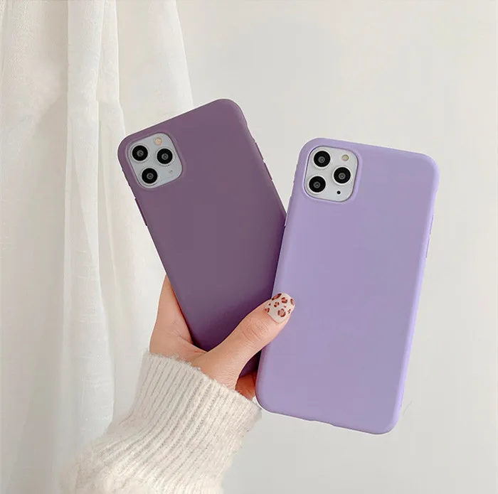 Простой Фиолетовый матовый мягкий чехол для телефона для iPhone 11 12 Mini Pro Max XS Max XR 7 8 Plus, однотонный полный защитный чехол